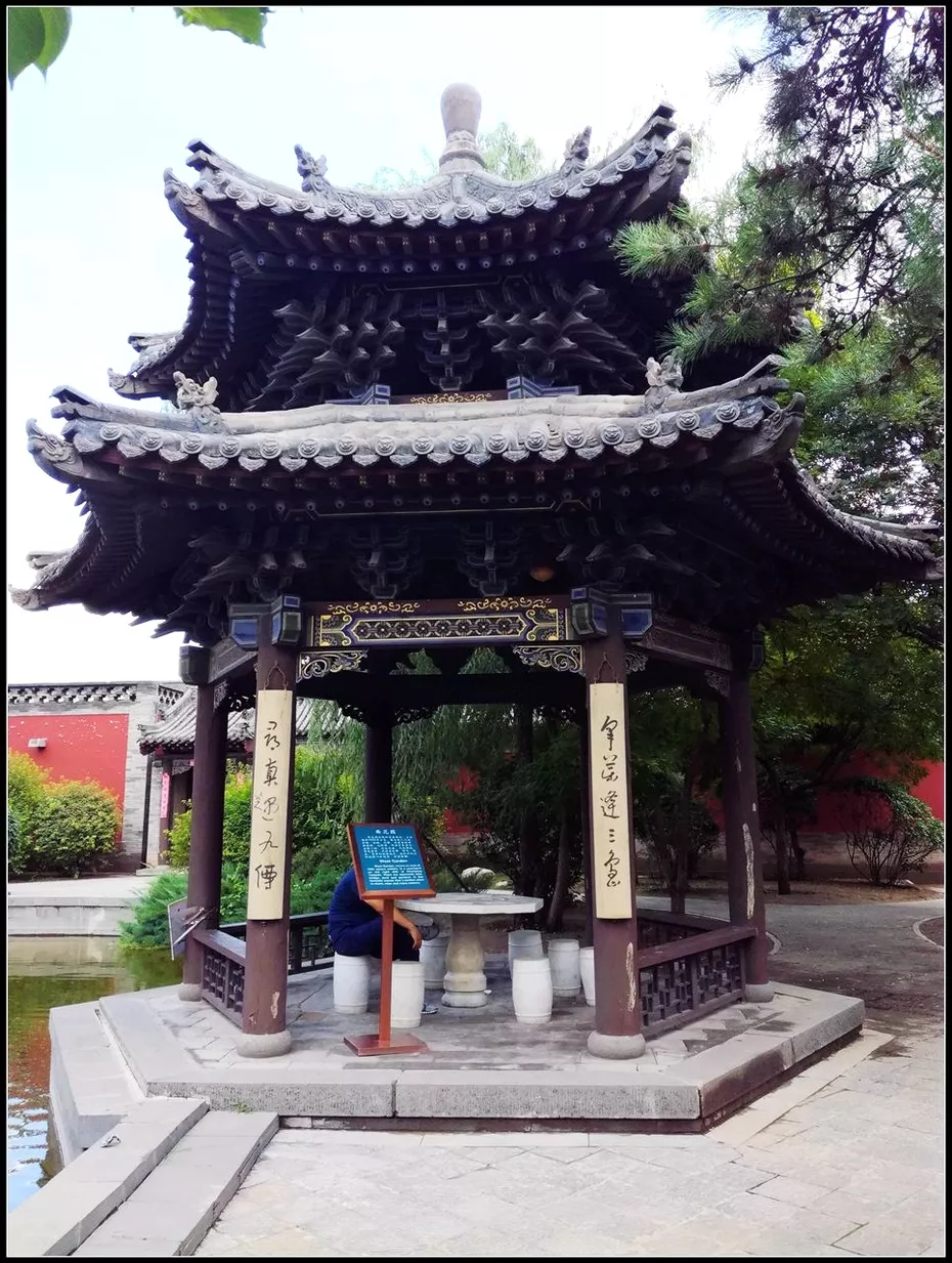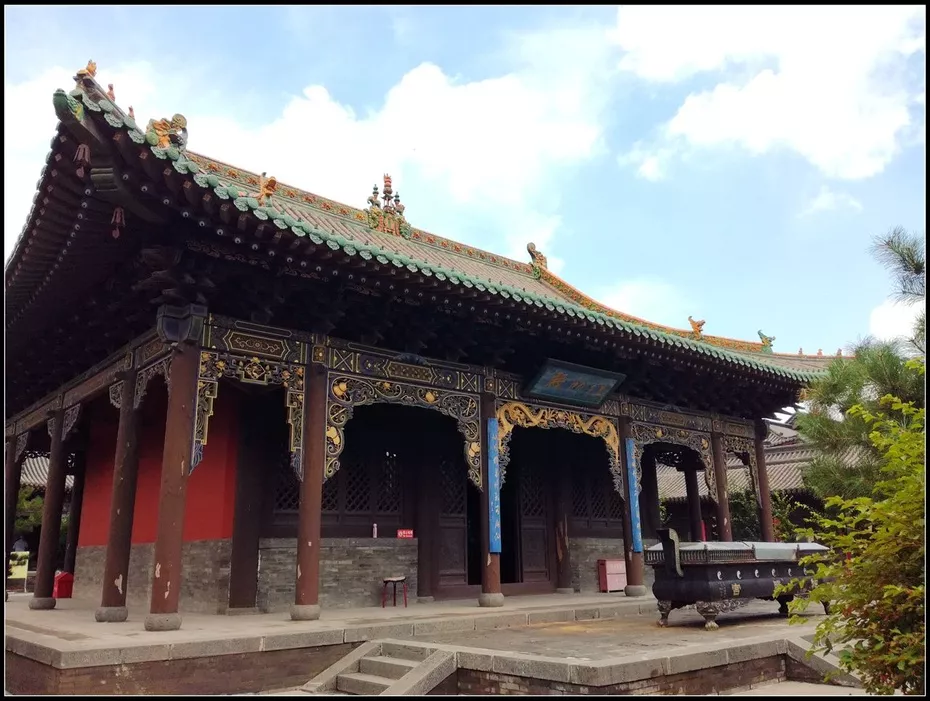 太原純陽宮——道教著名宮觀。始建于元代,是全國重點文物保護單位。其九宮八卦院,極具特色。現(xiàn)辟為山西省藝術博物館,收藏有眾多國寶級文物,其中有一碑廊,陳列著北魏、東魏、北周、北齊等時代的名碑等30余通,是研究我國碑刻藝術的寶貴資料。漫步于純陽宮內(nèi),眼前有北朝碑刻、腳下是明、清方磚,前有傳統(tǒng)書畫藝術,后有樓閣式建筑,錯落有致,曲折回旋,徜徉此間,大有“恍若隔世”之感。