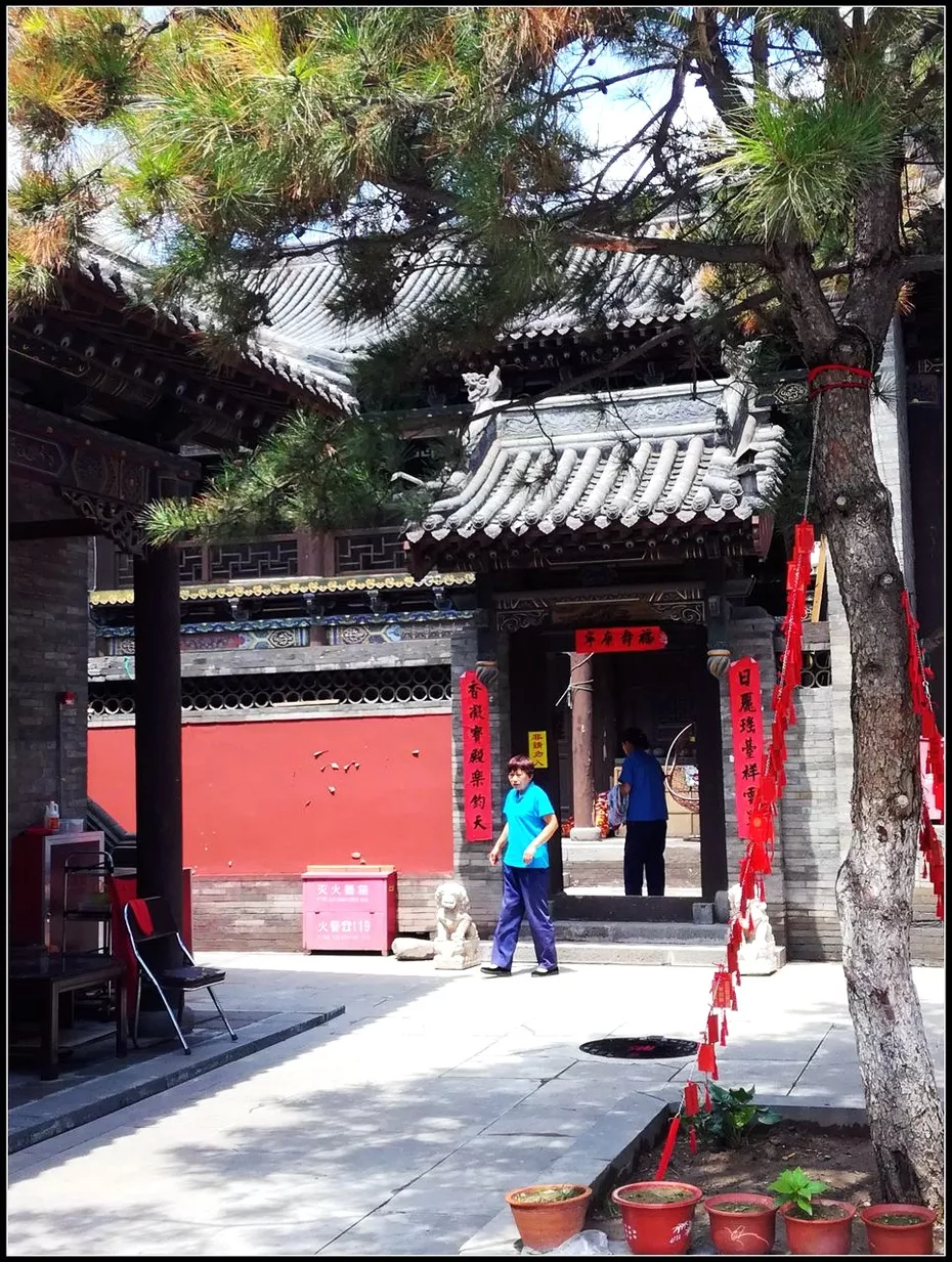 太原市區(qū)內(nèi)的純陽宮非常值得一看,我是誤打誤撞走進它的山門。純陽宮位于五一廣場西北側,是著名的道觀?!凹冴枴笔翘拼朗繀味促e的號,“宮”是供奉神仙處所的尊稱。它始建于元朝,到了明萬歷年間開始擴建,清乾隆郡守郭晉大興土木主修,形成今天的規(guī)模。道觀內(nèi)以樓閣為依托,供奉道教諸神,建筑布局緊湊,保存原有的風貌,其中巍閣是道觀最高點,人站此處,居高臨下,五一廣場盡收眼底。純陽宮收藏許多