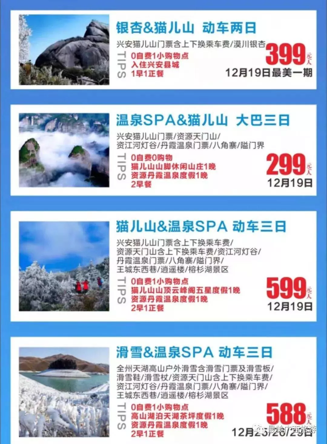2、天門山上下?lián)Q乘車費25元/人自愿自理;貓兒山上下?lián)Q乘車費60元/人自愿自理(11月20-12月31日活動價),不參加的游客可在山腳下游玩等候。