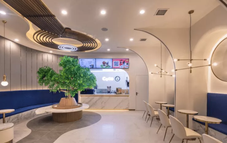 以寬敞空間與簡(jiǎn)約美學(xué)為特色,精心打造的別具一格、低調(diào)奢華的茶飲空間,