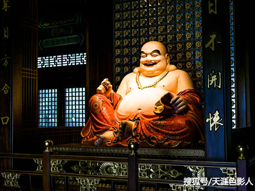 大悲寺于清康熙五十一年(1712年)重新修建時,康熙皇帝賜名并手書寺名。圖為天王殿內(nèi)的彌勒佛。