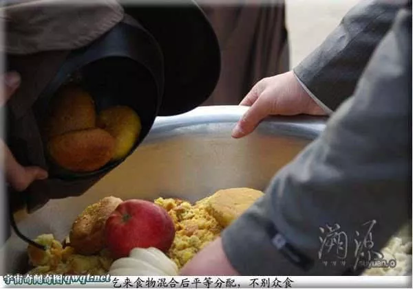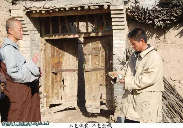 走出好遠,后面有人大聲說道:“看啊!那才是真正的出家人,連頭都沒有抬一下、、、”到某家乞食,一老頭抬頭不說話,掏出5元錢,遞了過去。僧說:“出家人不要錢,素飯菜就行?!崩先说氖忠粫r收不回去,愣愣的發(fā)呆之后,大喊一聲:“快!多盛點飯” 。