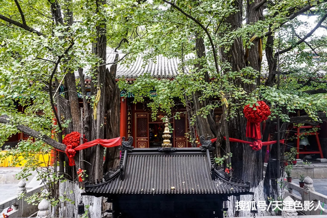 圖為大悲寺后的兩棵銀杏古樹,夏日里翠葉遮天,濃蔭蔽日,秋天一片金黃,非常美麗。