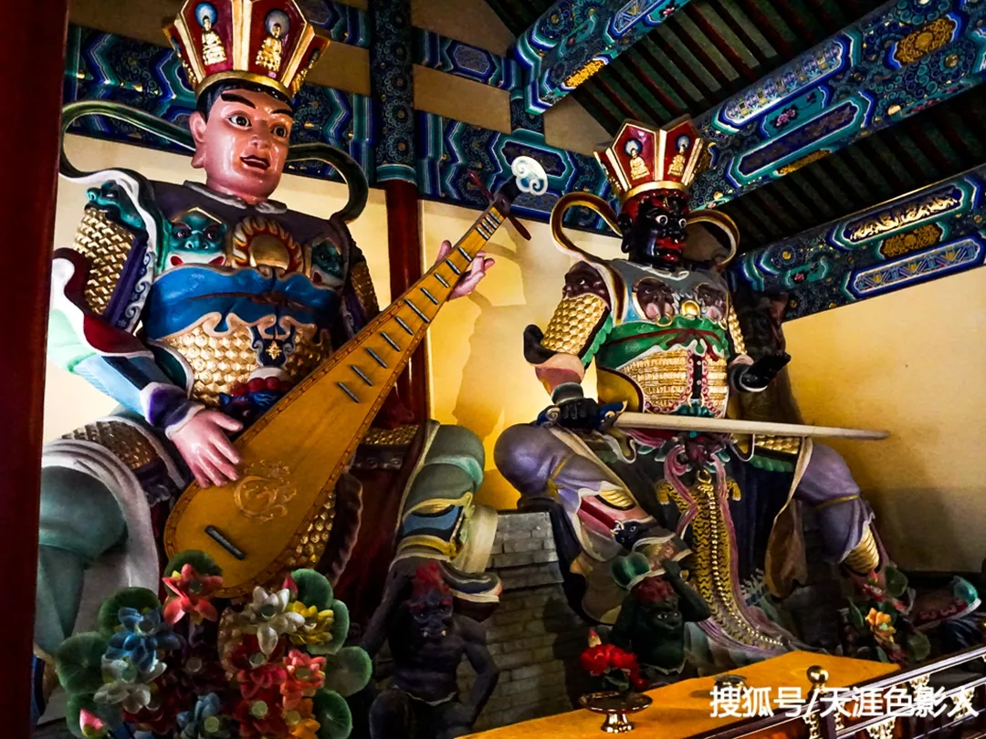 圖為天王殿內(nèi)左右兩側(cè)的四大天王。