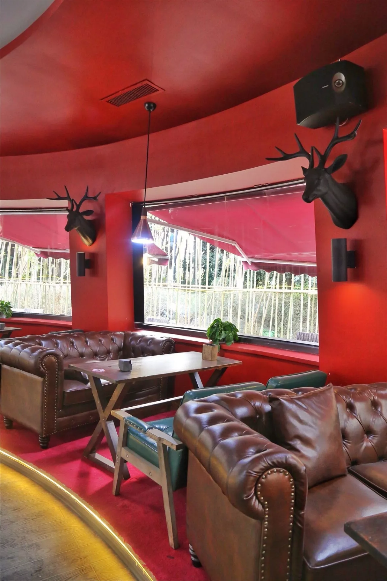 店內(nèi)的陳設(shè)也不同于別家打邊爐的港式風(fēng)味,紅色的墻面搭配深色系的皮質(zhì)沙發(fā),散發(fā)著英倫的優(yōu)雅,還有綠植環(huán)繞著的籬笆墻,絕對(duì)是打邊爐界的顏值擔(dān)當(dāng)~