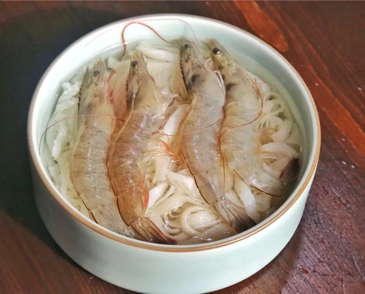 四只基圍蝦鋪在滿滿的牛百葉上,蝦都是當(dāng)天現(xiàn)買鮮活的,底下一層牛百葉鋪的也非常厚實(shí)~