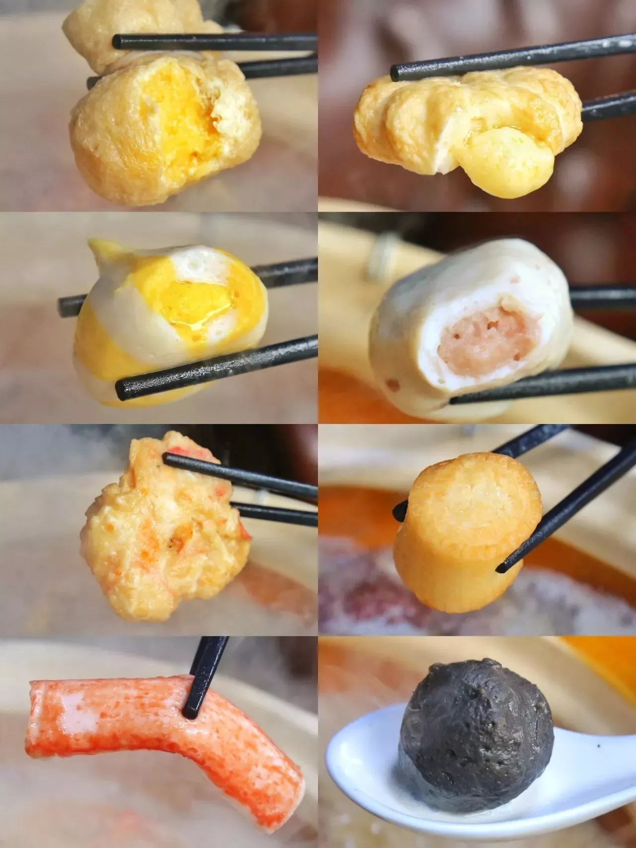 8種丸子+年糕的拼盤組合,選擇非常豐富,幾乎每種都帶流心內(nèi)餡,一口咬下就是驚喜~