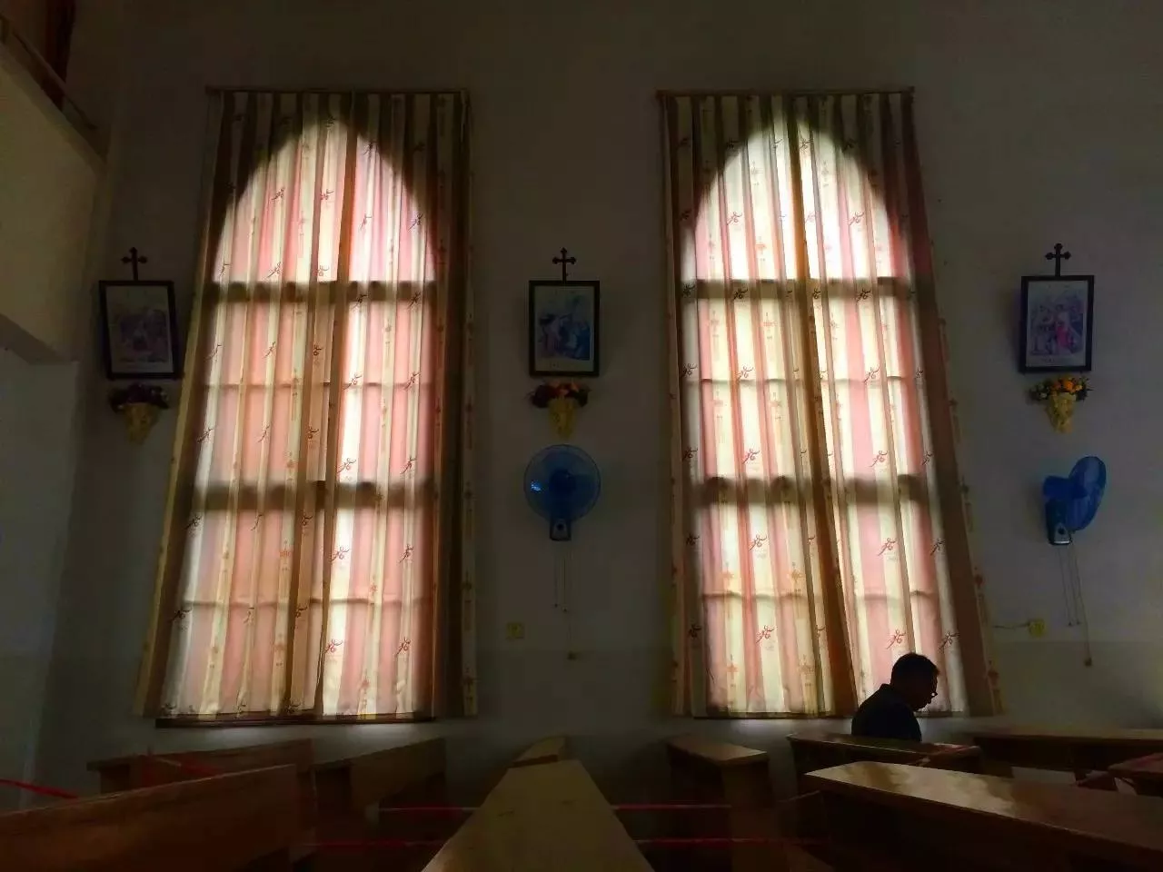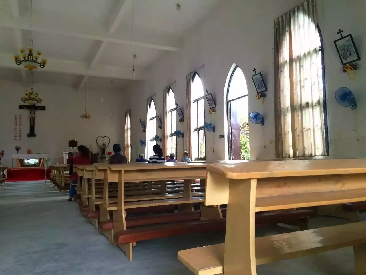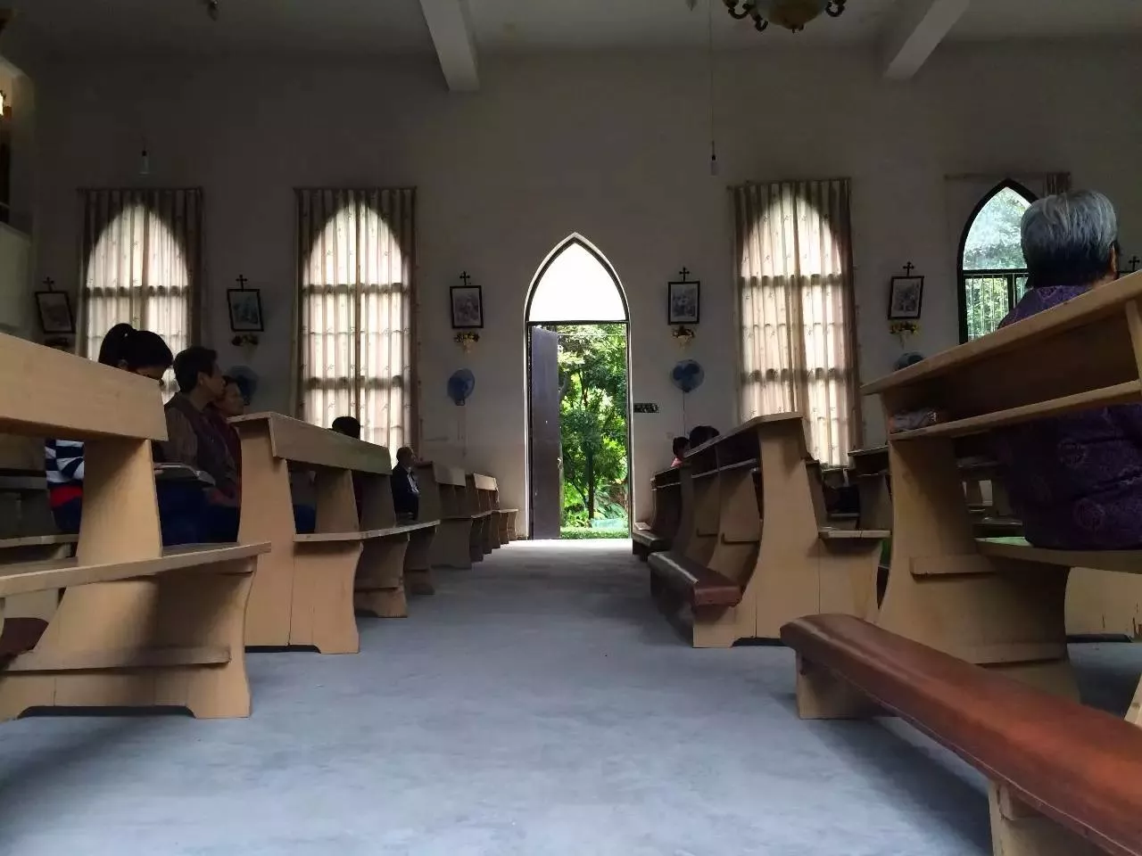 教堂里零散的坐著一些信眾