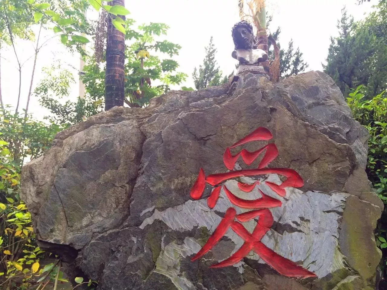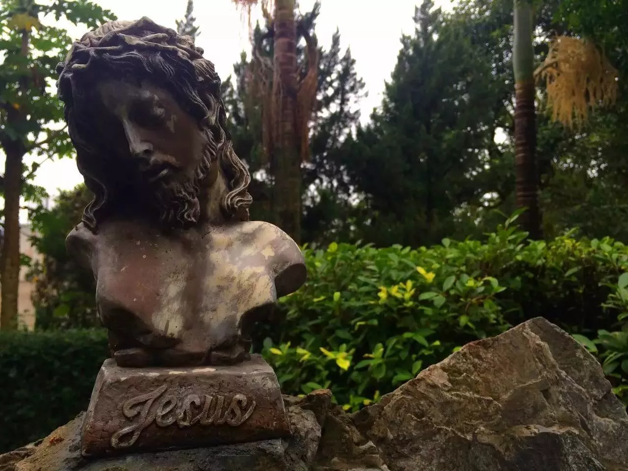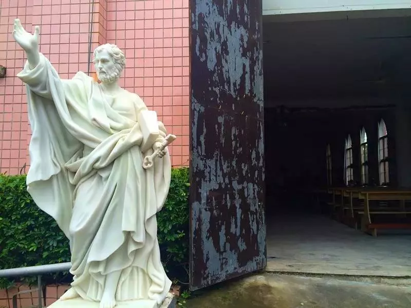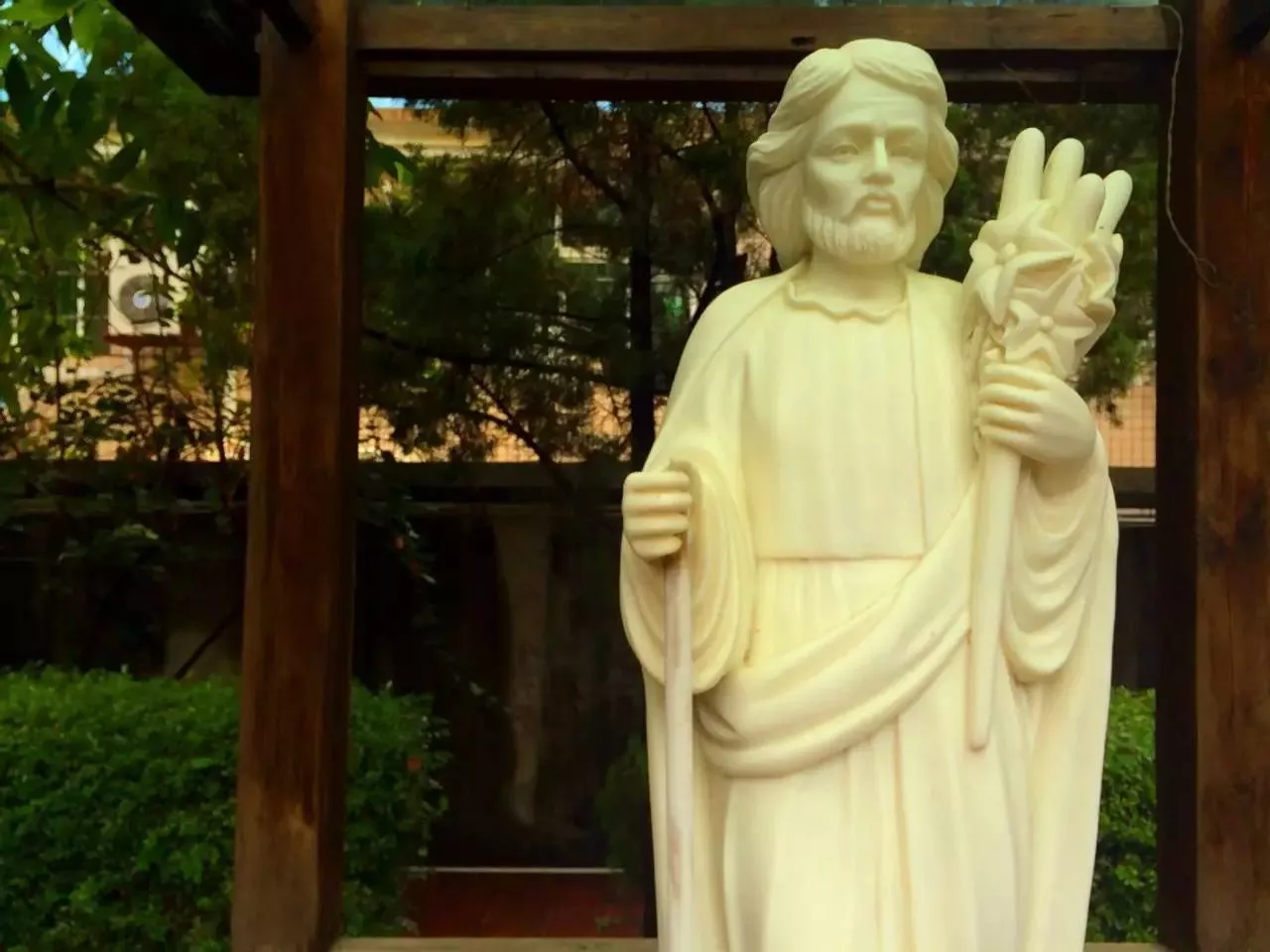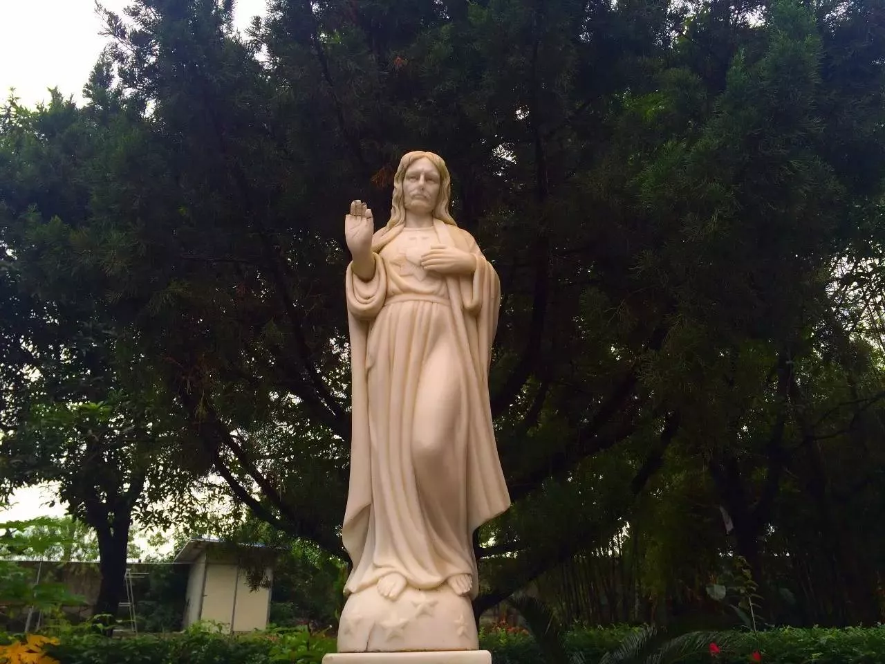 院子里有耶穌圣心像、圣母像