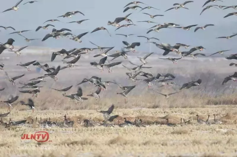 部分候鳥(niǎo)還停留在敬信濕地沒(méi)有南遷