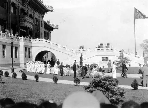 1935年2月,當(dāng)時(shí)的上海市政府倡議舉辦“集團(tuán)結(jié)婚”,得到了飽受繁文縟節(jié)和經(jīng)濟(jì)壓力之苦的年輕人的呼應(yīng)。1935 年4 月3 日,首屆集團(tuán)結(jié)婚在市政府大廈前舉行,大禮堂內(nèi)外花團(tuán)錦簇,禮堂門首掛著橫幅“上海市第一屆新生活集團(tuán)結(jié)婚典禮”。