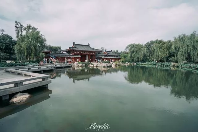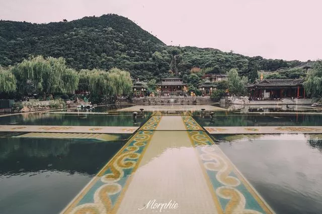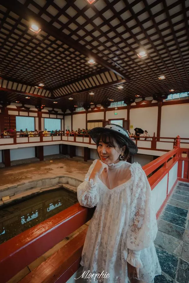 華清宮里最適合拍漢服的就是以 九龍 湖和芙蓉湖為中心的皇家園林區(qū)域。 九龍 湖正對(duì)著飛霜殿,湖四周的亭臺(tái)樓榭很是精致,晚上的舞劇《長(zhǎng)恨歌》就是以這片華麗的湖水為舞臺(tái)。
