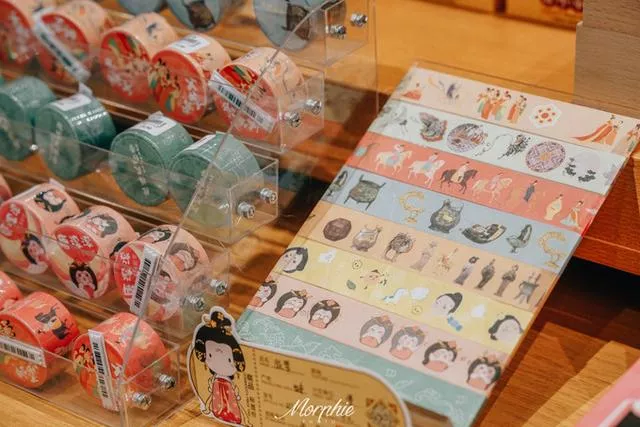 《長(zhǎng)恨歌》演出開(kāi)始前,華清宮會(huì)清場(chǎng)為舞臺(tái)做準(zhǔn)備。暫時(shí)離開(kāi)前的最后一刻,就是文創(chuàng)中心里愉快的買買買時(shí)間了。華清文創(chuàng)充滿了唐代特色,將傳統(tǒng)文化融入到當(dāng)下的生活日常,萌帝萌妃系列、手帳文具系列、生活用品系列,都設(shè)計(jì)得既實(shí)用又有趣味。而且這里還有兩處高科技互動(dòng)體驗(yàn),可以1分鐘GET川劇變臉,也可以秒換漢服,感受一次娘娘的盛裝。