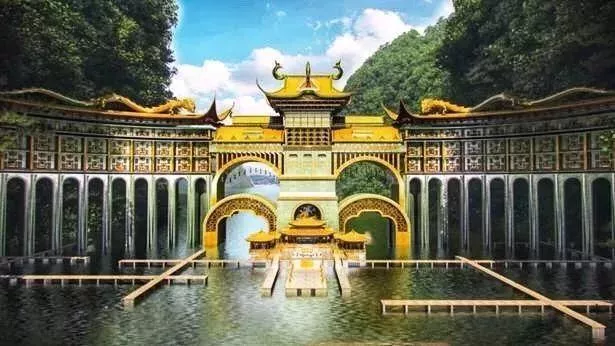 從隋無(wú)漏寺到唐大慈恩寺,雁塔由五層加為七層。任斗轉(zhuǎn)星移,玄奘西行,在無(wú)數(shù)國(guó)人心中是一段難舍的情懷。偶然走進(jìn)雁塔故事,迎面而來(lái)是激光的時(shí)空隧道,在時(shí)空隧道和涓涓細(xì)流之中我們穿越唐靜覺(jué)寺的斷壁殘?jiān)瑩荛_(kāi)盤絲洞的藕斷絲連,穿越女兒國(guó)的兒女情長(zhǎng)到達(dá)西方世界,極樂(lè)凈土,廣大無(wú)邊。七寶為地,鳥(niǎo)語(yǔ)花香。瓊樓玉宇鱗次櫛比,七色神樹(shù)皆現(xiàn)佛剎,讓人類的心靈來(lái)到一片凈土,得到全新的洗滌…