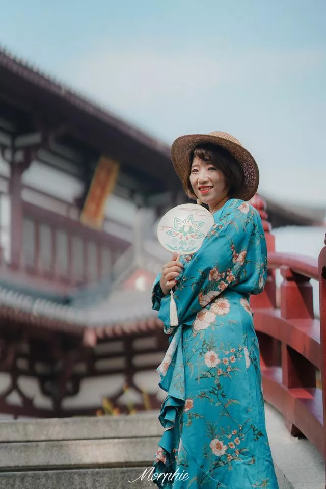 微風(fēng)吹拂,羅衣飄飄。輕羅小扇,暗香花影。漫步在這座締結(jié)了偉大愛(ài)情的皇家園林,身穿漢服的我,忍不住覺(jué)得自己好像真的是唐朝女子穿越而來(lái)。