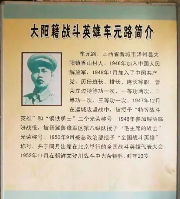 車元路——全國(guó)戰(zhàn)斗英雄、毛主席的戰(zhàn)士、抗美援朝英烈。解放運(yùn)城、臨汾的大功臣,在三打運(yùn)城中表現(xiàn)突出!