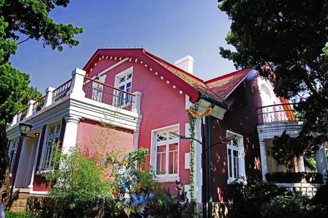 1935年因洪深編劇、胡蝶主演的電影《劫后桃花》在此拍攝而名聲大噪。粉色的房子埋在綠蔭之中,煞是好看!