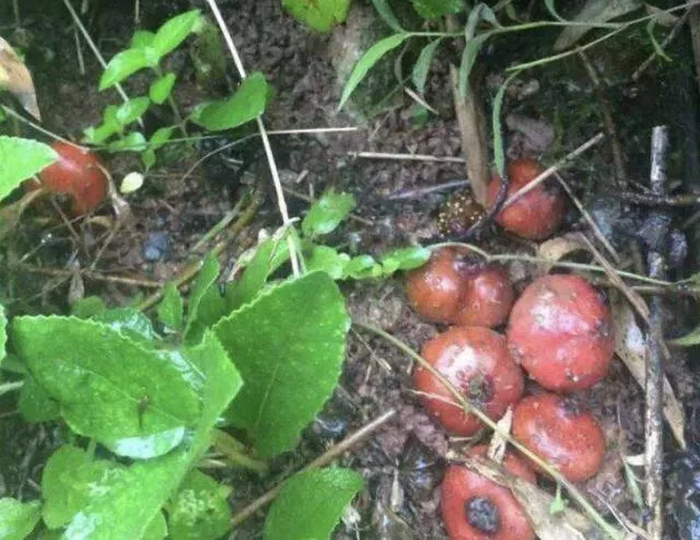 這一種棕色的野果,它的大名就是野地瓜,那為什么它被稱為野地瓜呢?其實(shí)我覺得跟它的生長環(huán)境有關(guān)系,它的果子喜歡落在地面上,也就是可以在地面上生長,大部分的野地瓜是野生的,生長在陰涼、潮濕的野外,所以就被稱為“野地瓜”了。