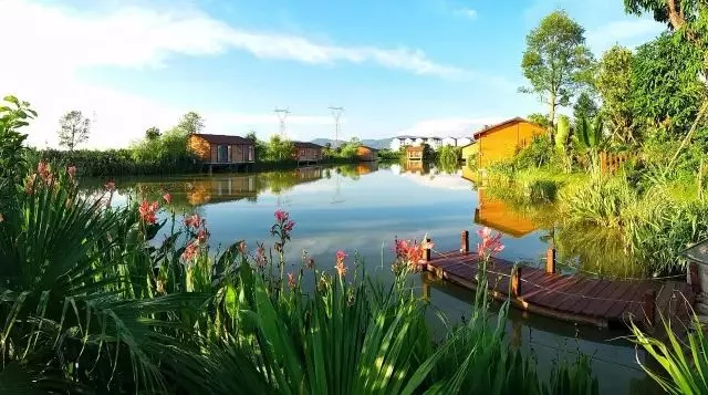 這里有繁花綠蔭掩映的水上小木屋、水清岸綠環(huán)繞著星羅棋布的魚塘。