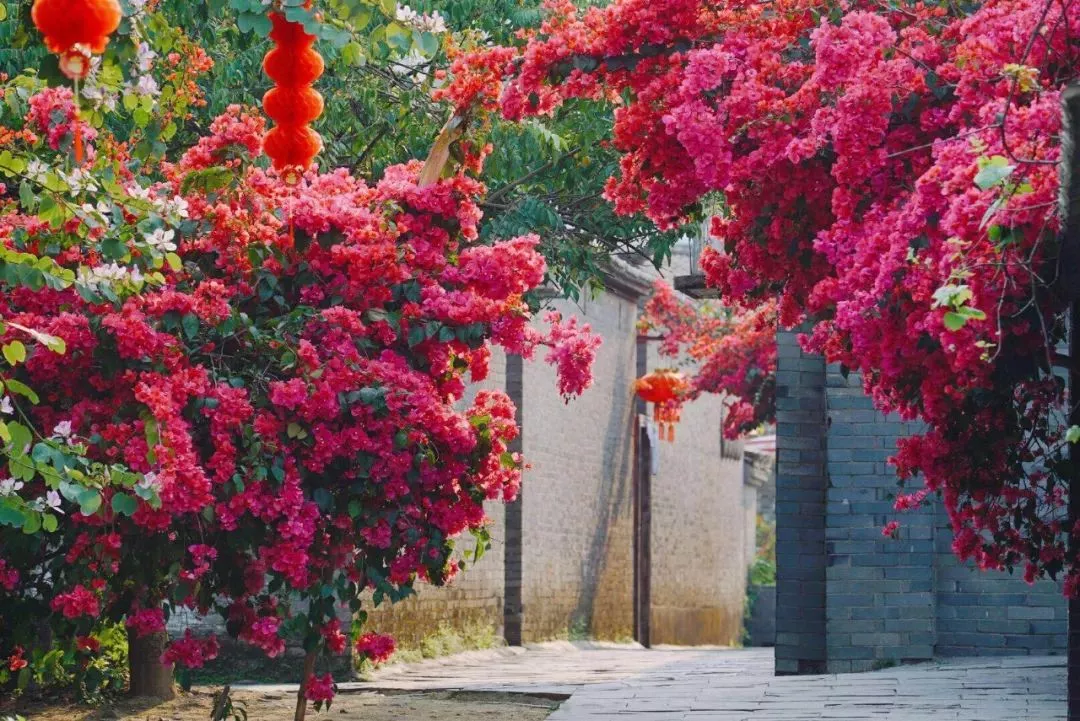 農(nóng)家樂的大門口,有一株三角梅開得正旺,很多路過的游客都會(huì)駐足在這里拍照……
