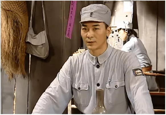 吳扮演的蔡水根在受領(lǐng)任務時,也是身穿新四軍的軍裝,盡管軍裝是粗布制造,但是軍裝非常的嚴整,左胸袋上的鋼筆別的也是一絲不茍,看上去就有革命軍人的范兒!