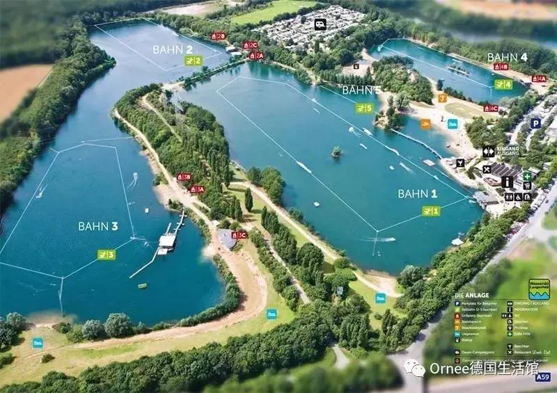 杜塞爾多夫向南20公里,這里絕對是滑水、水上滑板的天然樂園。一個真正的滑水和水上滑板的樂園。這里有四條水道,每條都設(shè)置了許多障礙物,用于水上滑板愛好者的挑戰(zhàn)。如果是團體活動,還可以租整條水道。初玩者也可以報名這里提供的課程,絕對不當旁觀者喲。價格在25歐(青少年/2小時)到39歐之間(成人/全天)。從杜塞上A59告訴或者直接乘坐S-Bahn(S6)可以輕松到達。