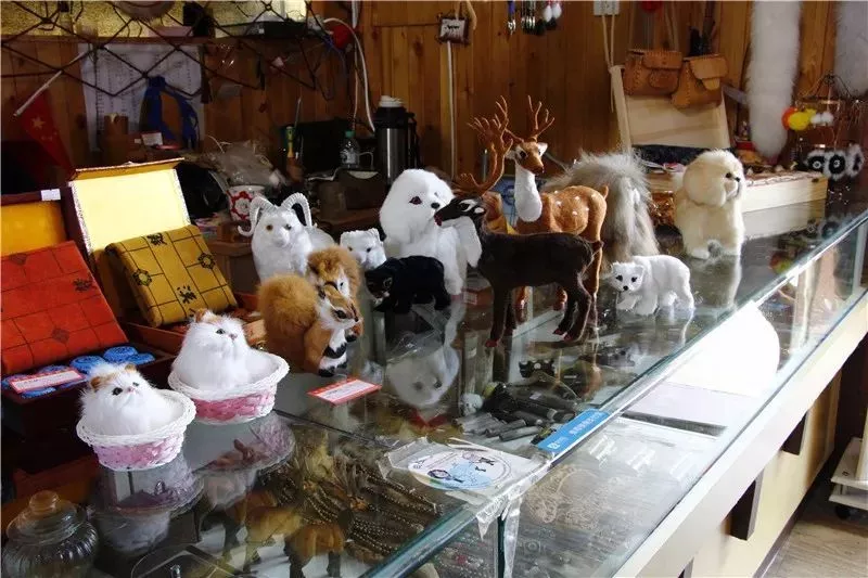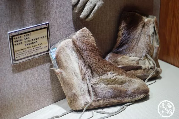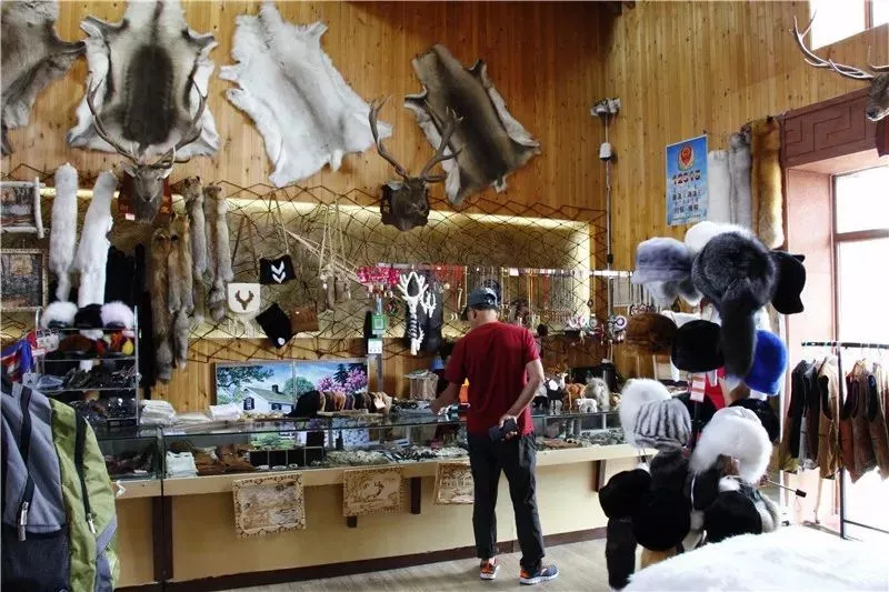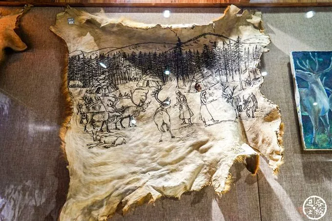 在這里展示的是鄂溫克人最為純正的獸皮文化手工藝品。所有獸皮都是手工熟制的,縫制獸皮的針線都是用手工制成的鹿筋線,這一古老的技藝已經(jīng)瀕臨失傳。