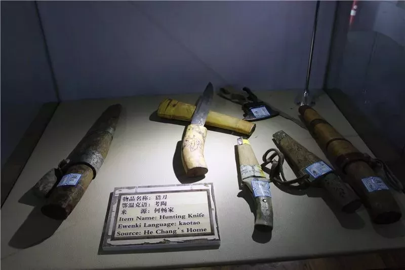 館內(nèi)形式不一的獵刀和彈藥為鄂溫克獵民描摹出波瀾壯闊的發(fā)展軌跡,帶銹的古跡斑斑證明了敖魯古雅真實(shí)存在的古老文化。