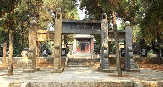 河南洛陽(yáng)東南15公里處伊川縣境內(nèi),有一處規(guī)模宏大的墓園,占地60余畝,植有古柏千余株,祠堂前有范文正公神道碑,其碑額為宋仁宗親書(shū)的“褒賢之碑”四字,碑文為隸書(shū),由宋代名臣、著名文學(xué)家歐陽(yáng)修撰寫(xiě)。祠堂旁的饗堂內(nèi)有“以道自任”匾額,為清代光緒帝親題。