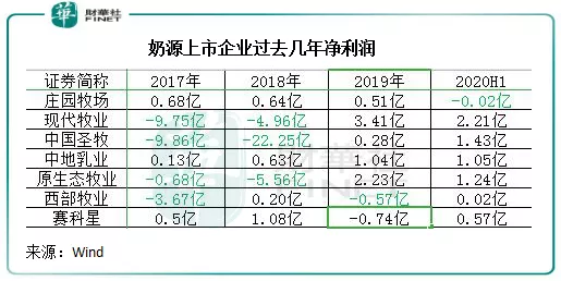 為何奶源生產(chǎn)企業(yè)愿意賣身?上游奶牛養(yǎng)殖門檻高、投資回報(bào)期長(zhǎng)、風(fēng)險(xiǎn)大等特點(diǎn),因國(guó)內(nèi)養(yǎng)殖成本高于海外,加之競(jìng)爭(zhēng)力難抵輸入性過剩,牧場(chǎng)的盈利水平一直存在很大問題。下圖可見,包括現(xiàn)代牧業(yè)和中國(guó)圣牧在內(nèi)的多數(shù)企業(yè)均產(chǎn)生過虧損,存在周期性波動(dòng)。2019年以來,隨著上游供給的減少和需求的向好,奶價(jià)逐步回升,奶源企業(yè)才逐步恢復(fù)盈利。