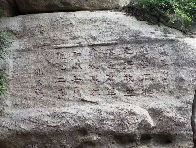 與此同時,在自己失去兵權(quán)之后的十余年,馮玉祥奔走于多個省市,積極從事抗戰(zhàn)活動,他的志向,也被自己題在石壁,山崖上。
