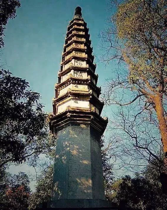 最頂上一座華嚴經(jīng)塔,是西泠印社的標志建筑,塔高二十余公尺,八面十一級,每一層亭檐都掛著鈴,微風過處,鈴聲清冽。塔旁有座石室,藏著社員齊力贖回的國寶“漢三老石碑”。社內還建有印學博物館,藏著歷代字畫、印章六千余件。