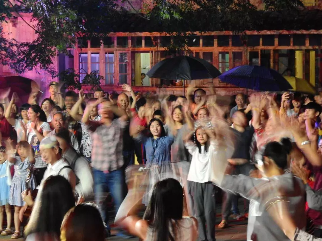 在文創(chuàng)振興鄉(xiāng)村的過(guò)程中,龍?zhí)洞宓幕鶎痈刹渴钢矩瀼厥?、市、縣三級(jí)政府關(guān)于“推動(dòng)村落活化利用,以文創(chuàng)理念演繹古村價(jià)值”的大政方針,對(duì) “黨委政府+藝術(shù)家+村民+古村+互聯(lián)網(wǎng)”的路子更頗有心得。今年國(guó)慶節(jié),龍?zhí)丁按鍍晌苯M織新老村 民創(chuàng)辦了一場(chǎng)別開生面的快閃活動(dòng)。當(dāng)日,龍?zhí)洞宓男吕洗?a href='/minhe/' target=_blank>民和村干部一起參與表演,歌唱美好生活,為新中國(guó)70周年生日獻(xiàn)禮。