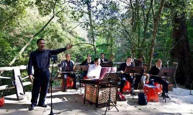 為從縣城遠道而來自發(fā)為紅葉節(jié)助興的鼓樂隊