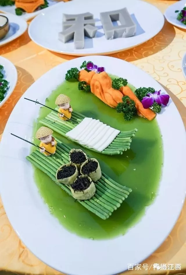 和仙慶余 食材為全魚一條。和合二仙是傳統(tǒng)社會民眾喜愛的神仙人物,荷花象征和仙,魚寓意連年有余,此菜品構(gòu)成“和仙慶余”的文化含義。