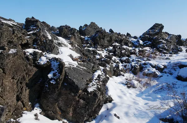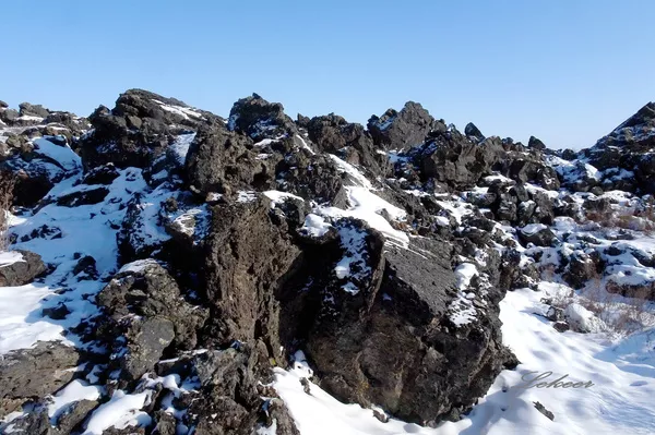 山上的雪白的令人心悸!但更令人驚奇的是,上山途中,被白雪掩埋的黑色熔巖臺(tái)地上,到處可見闊葉火山楊不屈虬勁的身姿。老黑山火山噴發(fā)距今還不到300年,在這么短的時(shí)間內(nèi),憑借風(fēng)力,亦或飛鳥的力量,火山楊的種子竟然就遍布熔巖臺(tái)地的各個(gè)角落,著實(shí)令人驚嘆!