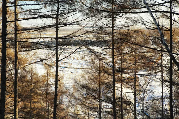 上山途中回望,大片的針葉混交林。