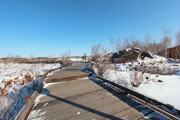 老黑山火山口休息站旁邊保護(hù)起來(lái)的火山噴發(fā)出來(lái)的巨石。