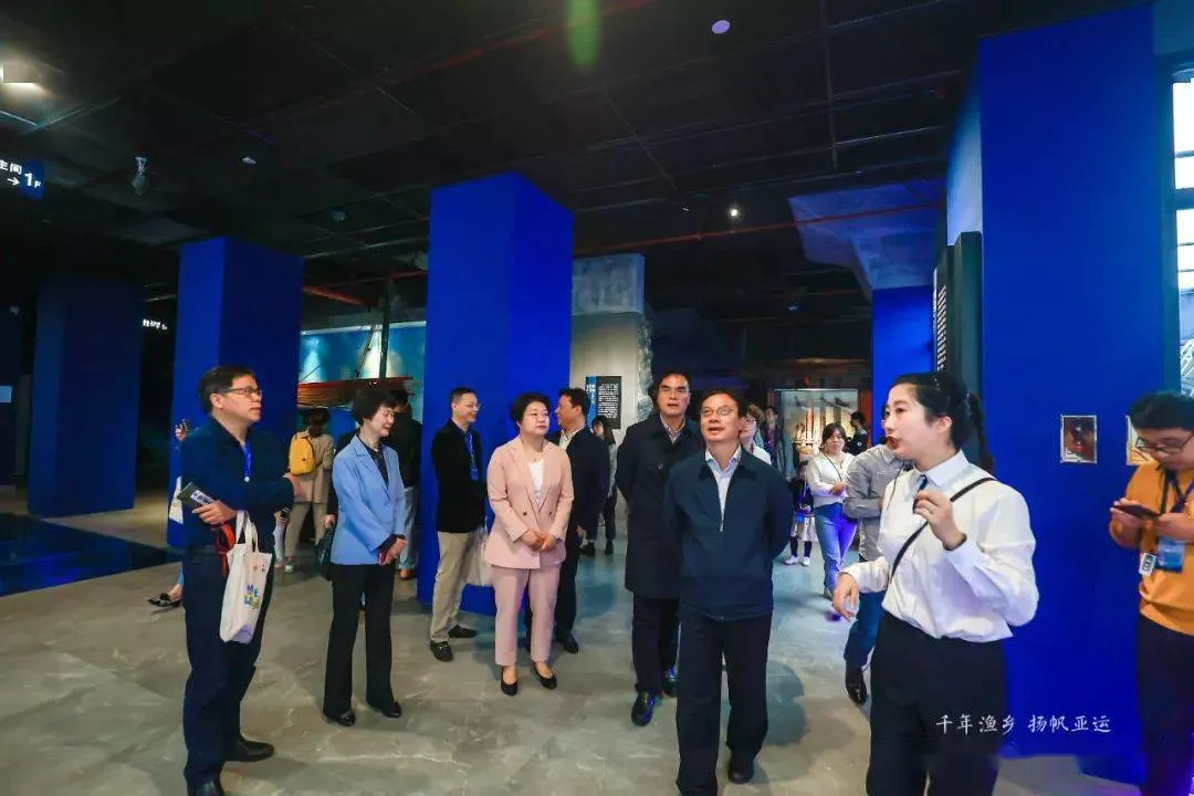 隨后,全國旅游標(biāo)準(zhǔn)化技術(shù)委員會主任、全國文體康旅裝備聯(lián)盟理事長、國家文化和旅游部科技教育司原司長孫若風(fēng)先生、中共象山縣委副書記、縣長包朝陽先生、國際休閑產(chǎn)業(yè)協(xié)會副主席、象山縣人民政府顧問朱至珍先生、中國帆船帆板運動協(xié)會執(zhí)委、浙江省水上運動管理中心副主任趙偉軍先生、寧波市文化廣電旅游局黨組成員屠雪松先生、中共象山縣委常委、石浦鎮(zhèn)黨委書記奚海峰先生,共同為中國海洋漁文化館揭幕,開館儀式結(jié)束后各位領(lǐng)導(dǎo)嘉賓移步中國海洋漁文化館內(nèi)進行參觀。
