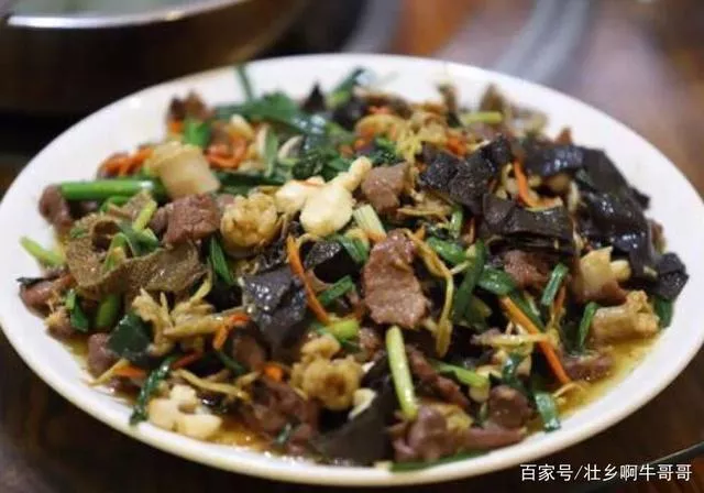 生炒牛料是玉林人通俗的說法,其實就是炒牛雜。生炒牛料是玉林的特色美食,是外地來的客人必點的菜式。玉林人食用牛肉牛料的時間,最早可以追溯到秦漢時期。以前在日常勞作中難免會有耕牛的死傷老化,在古代食材資源匱乏的背景下,只好將耕牛宰殺分而食之。品質(zhì)較好的牛肉被分給了上層社會,底層勞動人民則只能分到各式牛雜比如牛肚、牛腸、牛筋等等。底層勞動人民根據(jù)生活經(jīng)驗將牛雜生料一一處理,下佐料一起炒制,最后演變成了傳承至今的玉林特色生炒牛料。