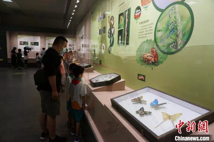 開展當(dāng)天,吸引眾多兒童和家長前來觀展,孩子們駐足在昆蟲標(biāo)本展品前細(xì)細(xì)觀摩為大自然增添美色的蝴蝶與蛾,了解形形色色的昆蟲家族。初中學(xué)生曾梓馨看完展覽后表示,暑假期間參觀這個展覽,讓她看到了大自然里很多類型的昆蟲,感覺很震撼,學(xué)到了昆蟲一代代繁衍的生存之道,它們的頑強,她最喜歡的是蝴蝶系列里的歡樂女神閃蝶。