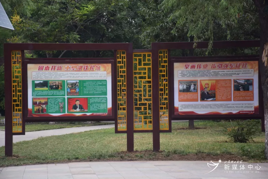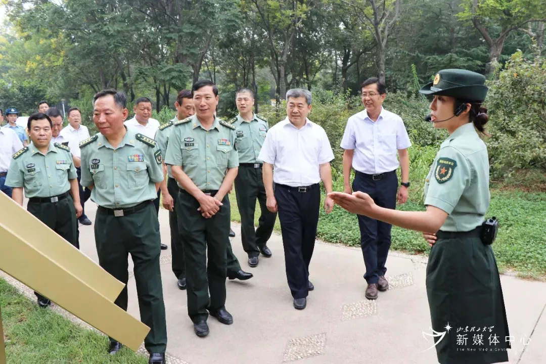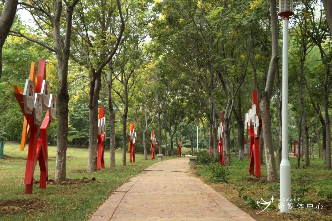 我校國防教育主題園由淄博軍分區(qū)政治工作處、張店區(qū)人武部和我校武裝部聯(lián)合建設(shè),整個園區(qū)占地約60畝。整個園區(qū)位于山東理工大學(xué)逸夫圖書館東南側(cè),主要依托花園內(nèi)7條步道,共劃分7大專題,分別展示光榮傳統(tǒng)和紅色基因、淄博革命印記和紅色地標、淄博籍將軍和英模、征兵政策和優(yōu)秀退伍軍人代表、理工大學(xué)國防教育和征兵工作成效、國防和軍隊建設(shè)新成就新氣象、先進武器裝備和大國利劍等7方面內(nèi)容。
