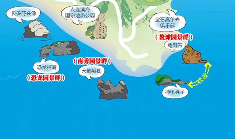 藍(lán)色的海水清澈見底,與碧海相接一線。三面環(huán)海,冬暖夏涼,氣候宜人,凝聚了3-9億年地質(zhì)奇觀,有“神力雕塑公園”之美譽(yù)。主要景點(diǎn)黃金海岸、金石園濱海地質(zhì)公園、金石蠟像館、生命奧秘博物館發(fā)現(xiàn)王國等。堪稱大連的“后花園”。