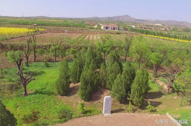 無人機(jī)環(huán)繞墓冢飛行一周,不同的角度可以看到不同的景象。從北向南,俯瞰郭子儀墓,如“眾星拱月”一般,坐落于一圈柏樹之中。此墓背靠群山,俯瞰關(guān)中平原,氣象萬千,景色壯美,依稀可以想象這里曾經(jīng)輝煌的景象。