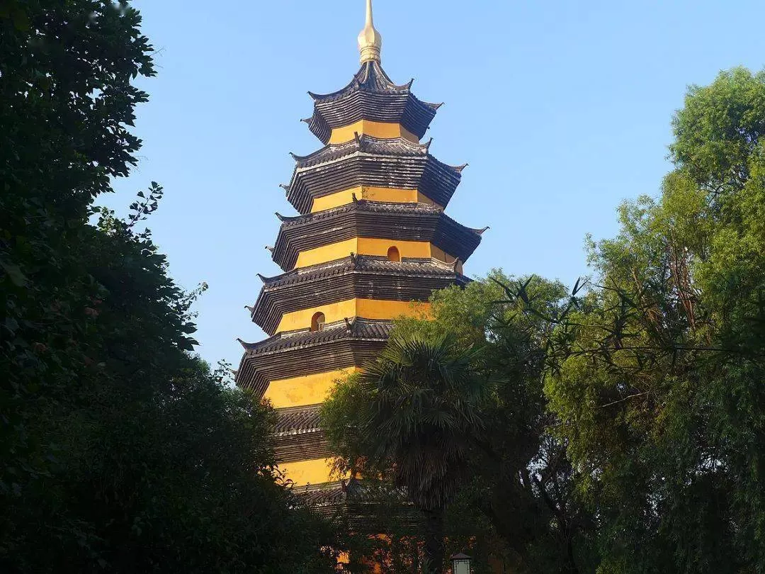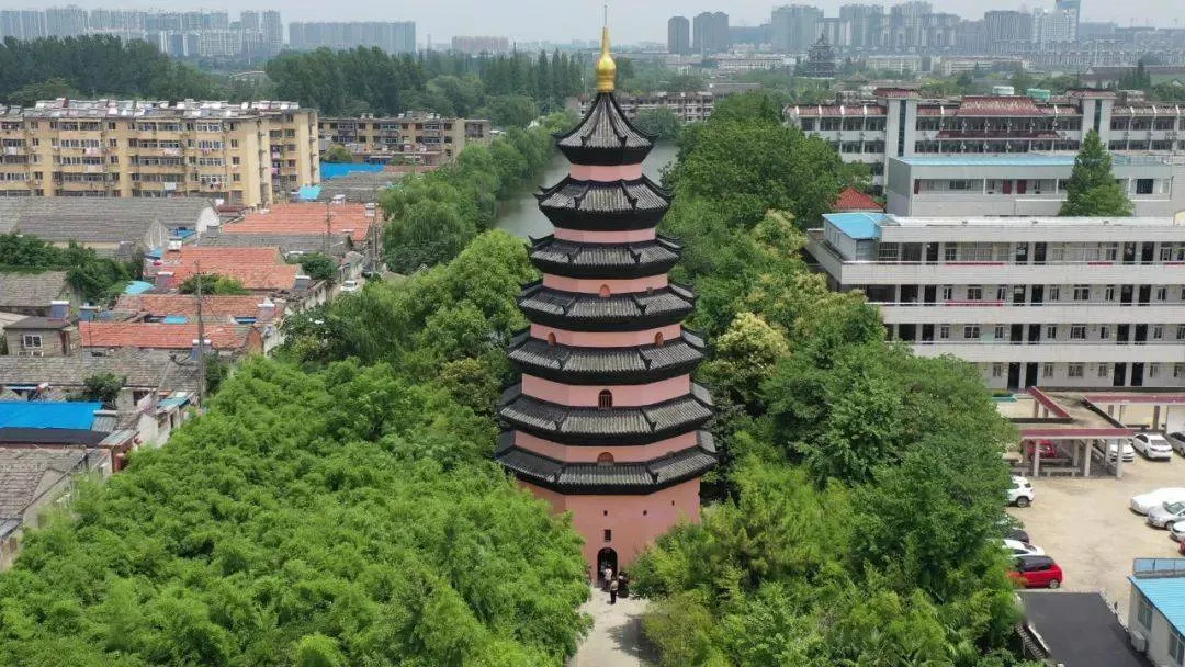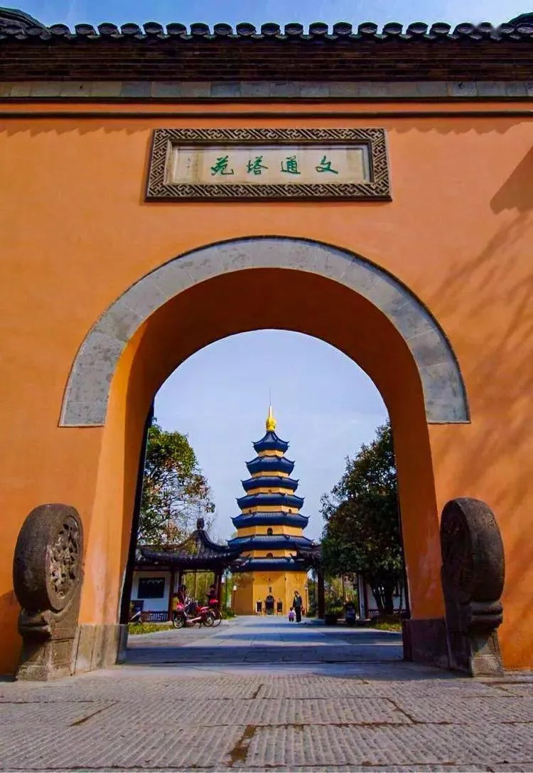 南門是依照寺院山門形式而修復的,大門上方的"文通塔苑"四字為當代著名書法家、原江蘇省書協主席武中奇先生所書。當游人踏進"文通塔苑"的門檻,首先映入眼簾的是古樸典雅的文通塔。