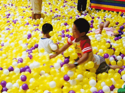 進入海洋球池前