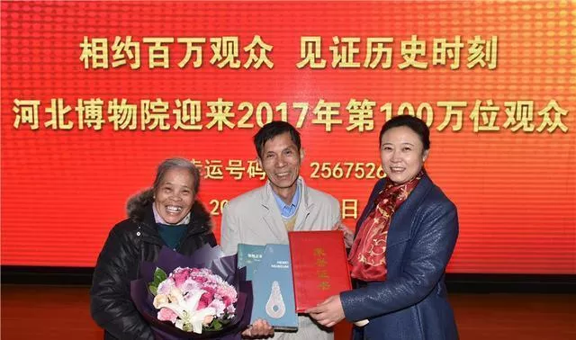 據(jù)悉,11月15日上午,位于河北省會石家莊河北博物院,迎來具有里程碑意義的時刻:來自廣東佛山市的七旬老人尹宗興,成為河北博物院2017年度第100萬位觀眾。這也是河北博物院64年歷史上,首次實現(xiàn)年度入館人次破百萬。