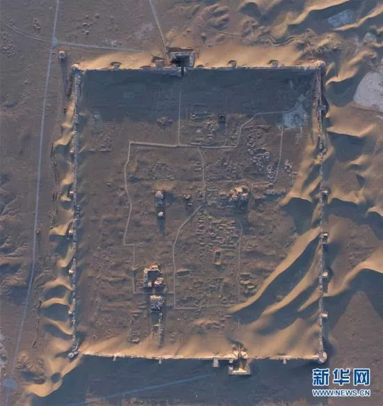 航拍的黑城遺址全貌(9月16日攝)。進入秋季,內蒙古自治區(qū)阿拉善盟額濟納旗迎來旅游旺季,大漠中的黑城遺址吸引了眾多游客。黑城又名黑水城,為西夏王朝“黑山威福軍司”所在地,元代設亦集乃路總管府,這里曾是古代居延道路的交通要沖。新華社記者 鄧華 攝