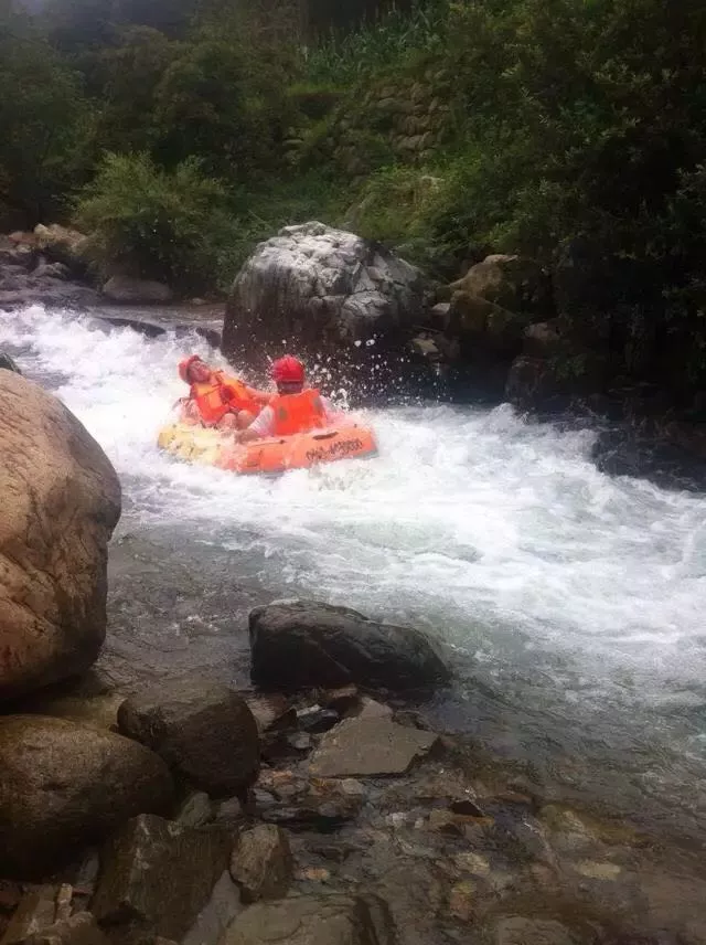 河水湍急,驚險刺激。整條漂流河道處于大山與古木大樹之間,山間常年煙雨彌漫,獨具風格。