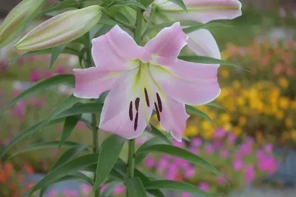 水仙百合花瓣寬而舒展色澤亮麗,有淡粉色、深粉色、紅色等顏色,花瓣無(wú)(沒(méi)有)斑點(diǎn)。水仙百合的花語(yǔ)是喜悅、期待相逢。